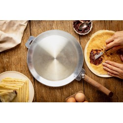 Avec cette conception, la chaleur est répartie de façon homogène sur toute la surface, assurant une cuisson uniforme de vos crêpes, galettes, et même œufs au plat.